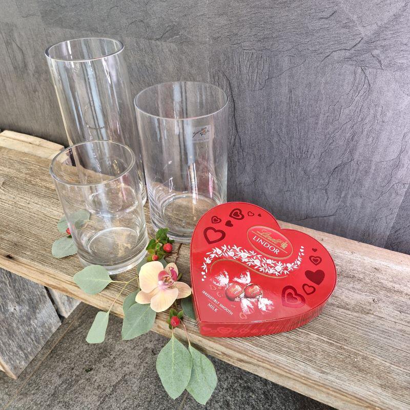 Kukkakimppujen lisäksi löydät meiltä myös maljakot ja suklaakonvehdit.